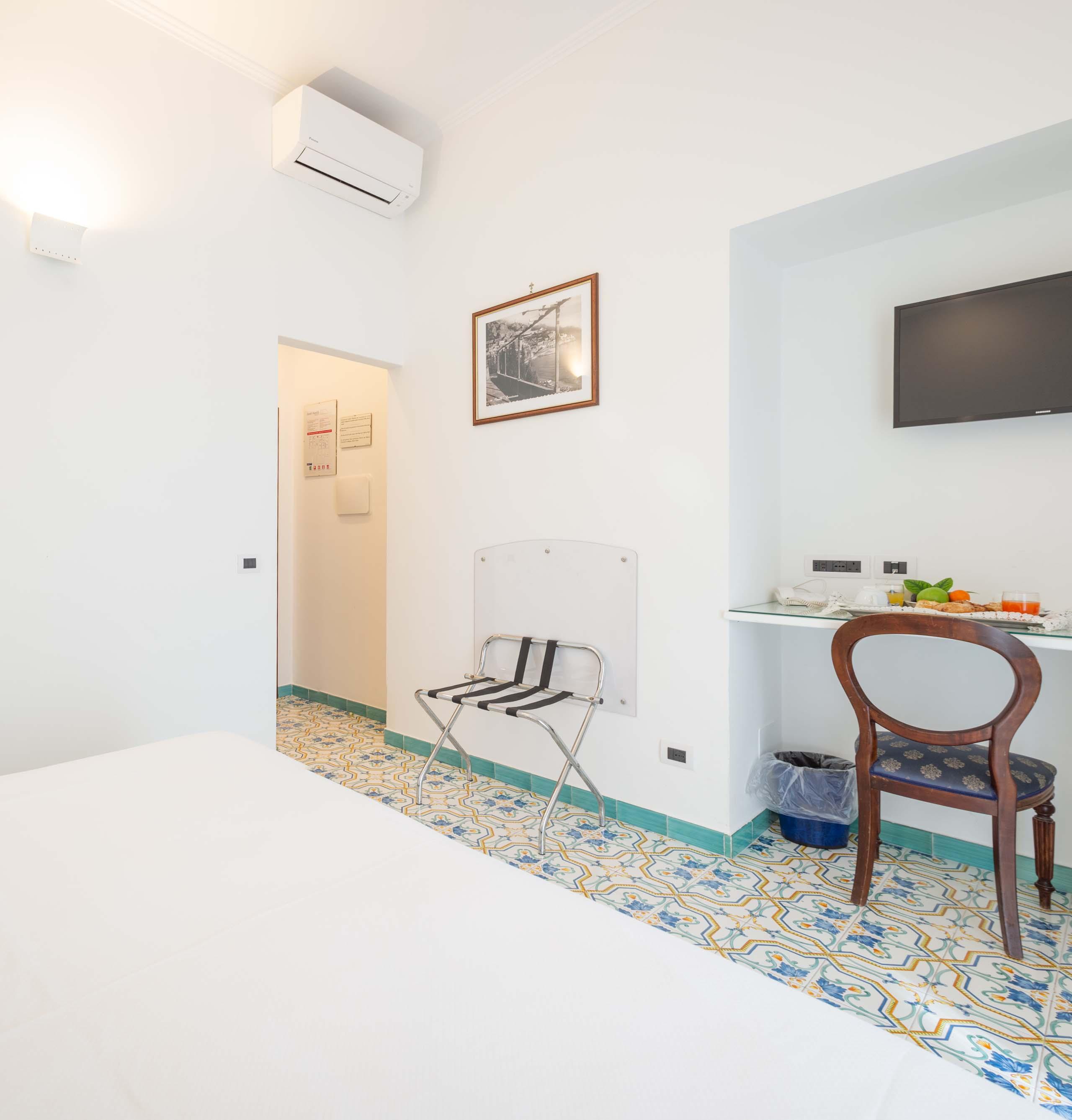The standard room with front or side sea view and private bathroom are the essence of the beauty of simplicity.